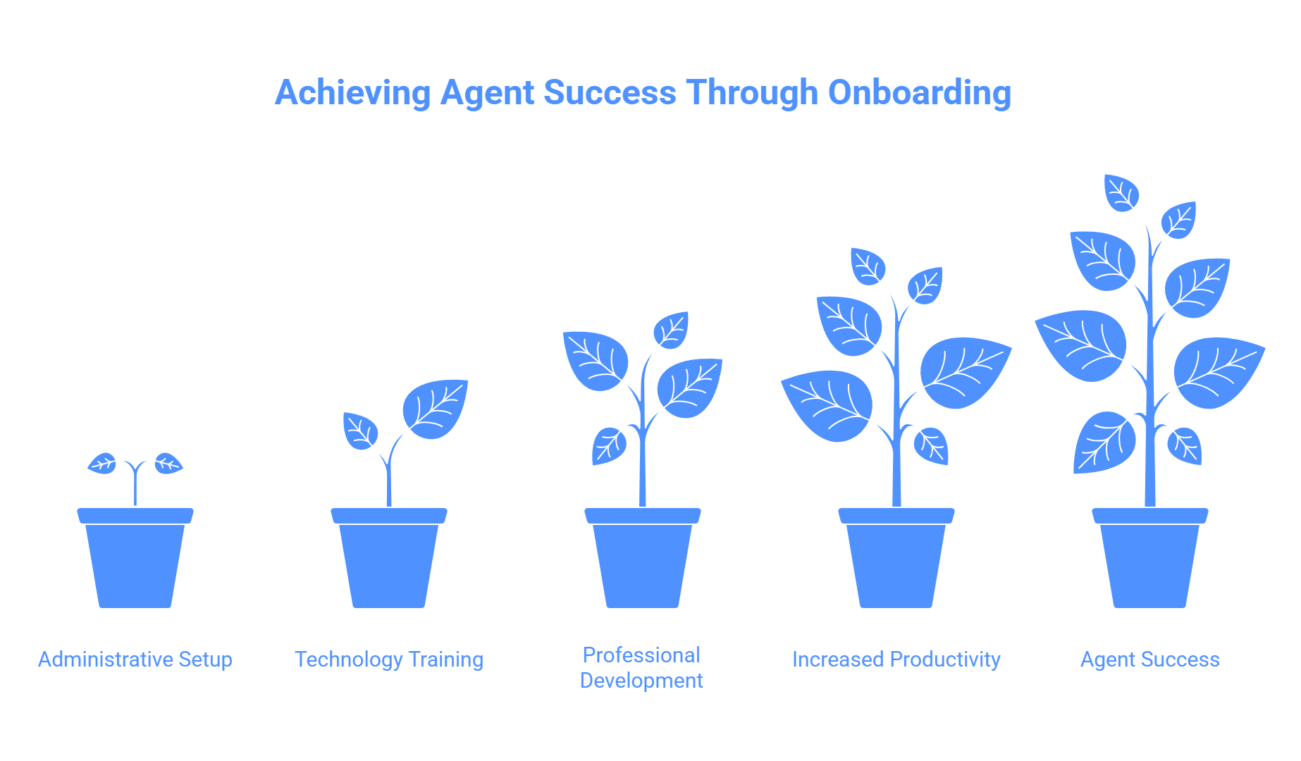 This encompasses orientation, training, technology setup, mentorship, and ongoing support—all designed to help agents quickly become productive in serving clients.
